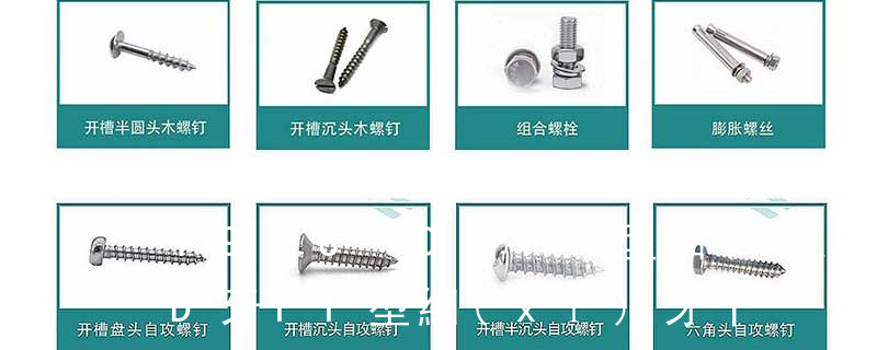 (鐵板牙自攻螺絲) B-2: Plastic Tapping Screw. (塑膠用,自攻螺絲) C: Wooden Screw : 木工螺絲 D: Drywall Screw :水泥墻螺絲 E: Self Drilling Screws鉆尾螺絲(不銹鋼鉆尾螺絲,復(fù)合材料鉆尾螺絲) F:膨脹螺絲,四片膨脹螺絲又