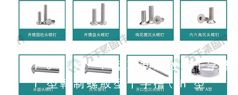 1、Flat:平頭 (鎖入后,頂部與工作件齊平)2、Oval:色拉頭、O頭、半沉頭 3、Round:圓頭 4、Pan:圓扁頭 5、Truss:大圓扁頭 6、Hex:六角頭 A-5:Finish Code/外觀處理。公制自攻螺絲 :于品名后方直接標示 Tapp 六角花形等;內扳擰:一字槽、十字槽H型、十字槽Z型、十字槽F型、四方槽、復合槽、內花鍵、內六角花形、內三角、內六角、內12角、離合器槽、六葉片型槽、高扭矩十字槽等。3、螺紋種類螺紋種類繁多,有自攻螺紋(